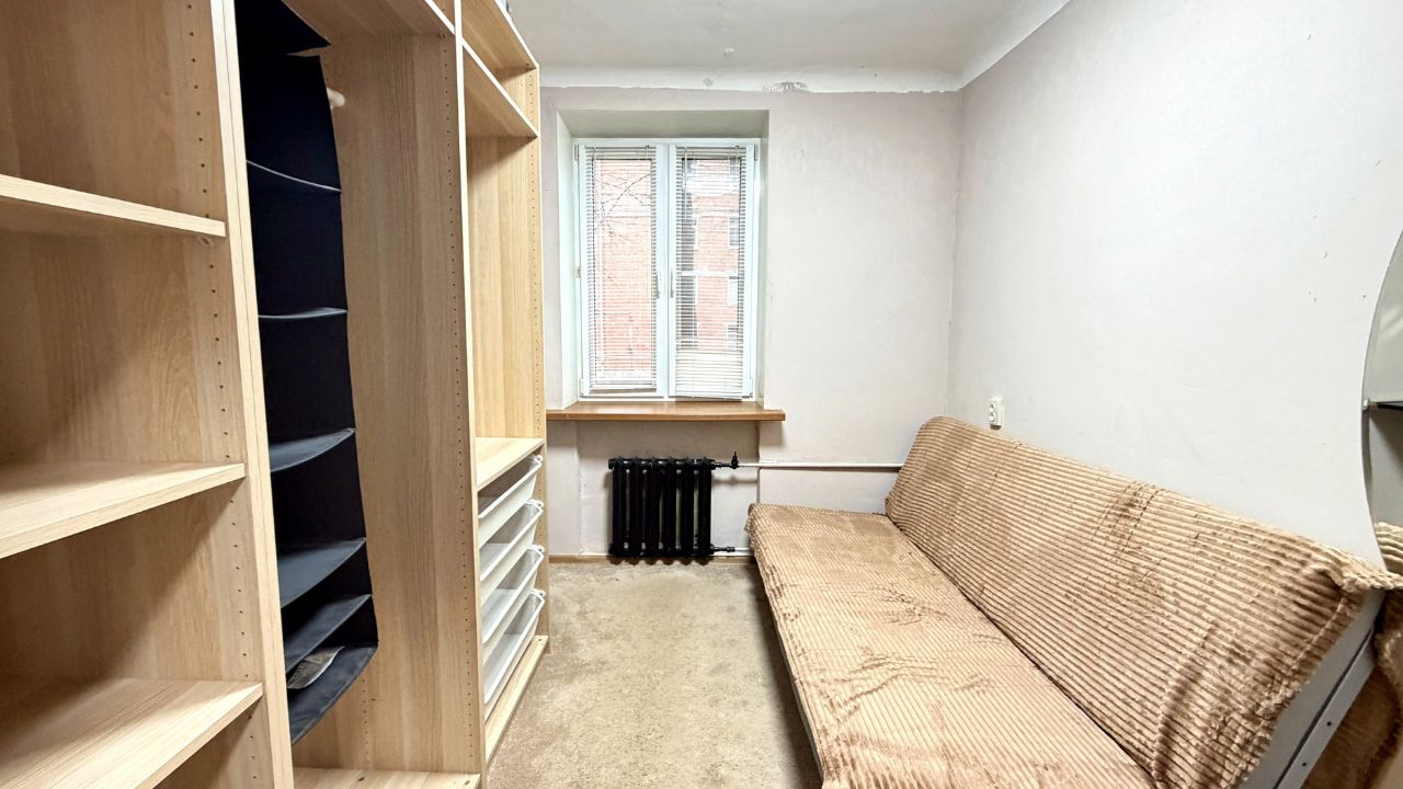 1/4-х этажного кирпичного дома 1959 года постройки. Высокий первый этаж, окна на восток - не на подъезд. Стеклопакеты. Балкона нет. Потолки 2.75 м.