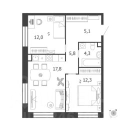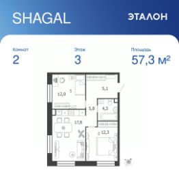 Общая площадь квартиры — 57.3 кв. м, этаж 3 из 18.