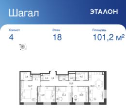 Общая площадь квартиры — 101.2 кв. м, этаж 18 из 18.