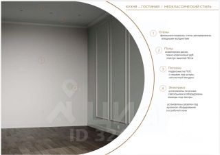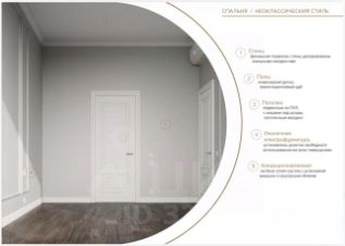 Полы — инженерная доска миндального оттенка, высокие плинтусы 10 см; в санузлах — керамогранит и тёплый пол.