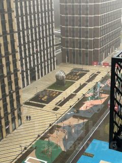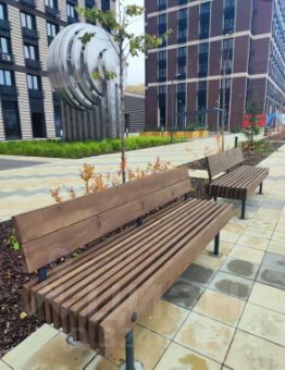 * Современный комплекс на стилобате: двор без машин, детские и спортивные зоны, коммерция на первых этажах.