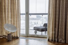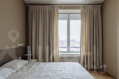 Шторы и жалюзи изготовлены под заказ из натурального льна, в спальной комнате дополнительно рулонные black out/