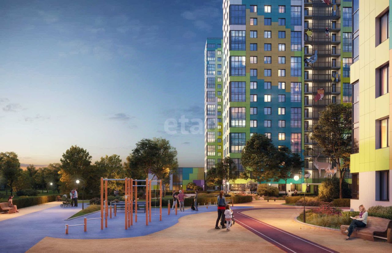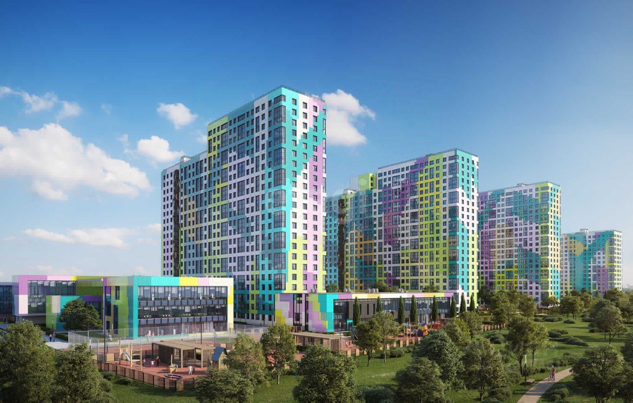 Комплекс состоит из четырех корпусов и включает собственную инфраструктуру: коммерческий детский сад и общеобразовательную школу на территории, что создает удобную среду для жизни с детьми.
