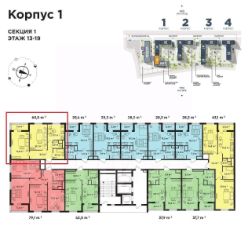 Двухкомнатная квартира площадью 60 кв.м. расположена на 19 этаже в современном жилом комплексе "Сказочный лес".