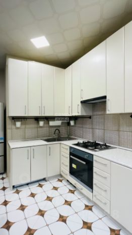 В квартире выполнен евроремонт. Планировка: просторная кухня, маленькая смежная комната, большая комната, совмещенный санузел. Предусмотрен теплый пол.