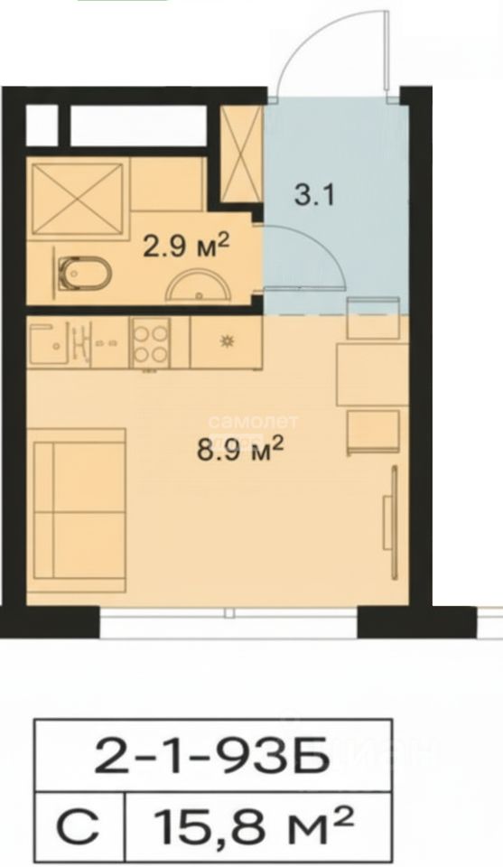 Площадь 15,8 кв.м, свободная планировка, высокие потолки 2,87 м.