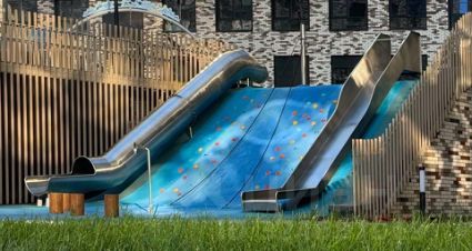 - Благоустроенная территория: Площадь с озеленением и местами отдыха, променад, летние веранды, площадка для выгула собак, спортивные площадки, шезлонги