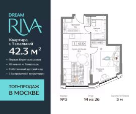 Продаётся Квартира с 1 спальней квартира на 14 этаже 26-этажного дома (3 корпус).
