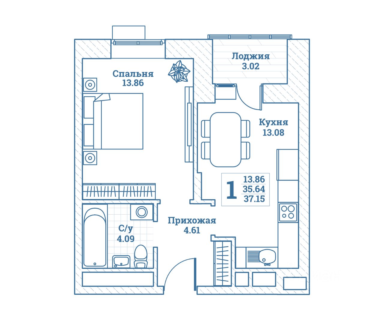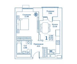 Общая площадь37,15 м²