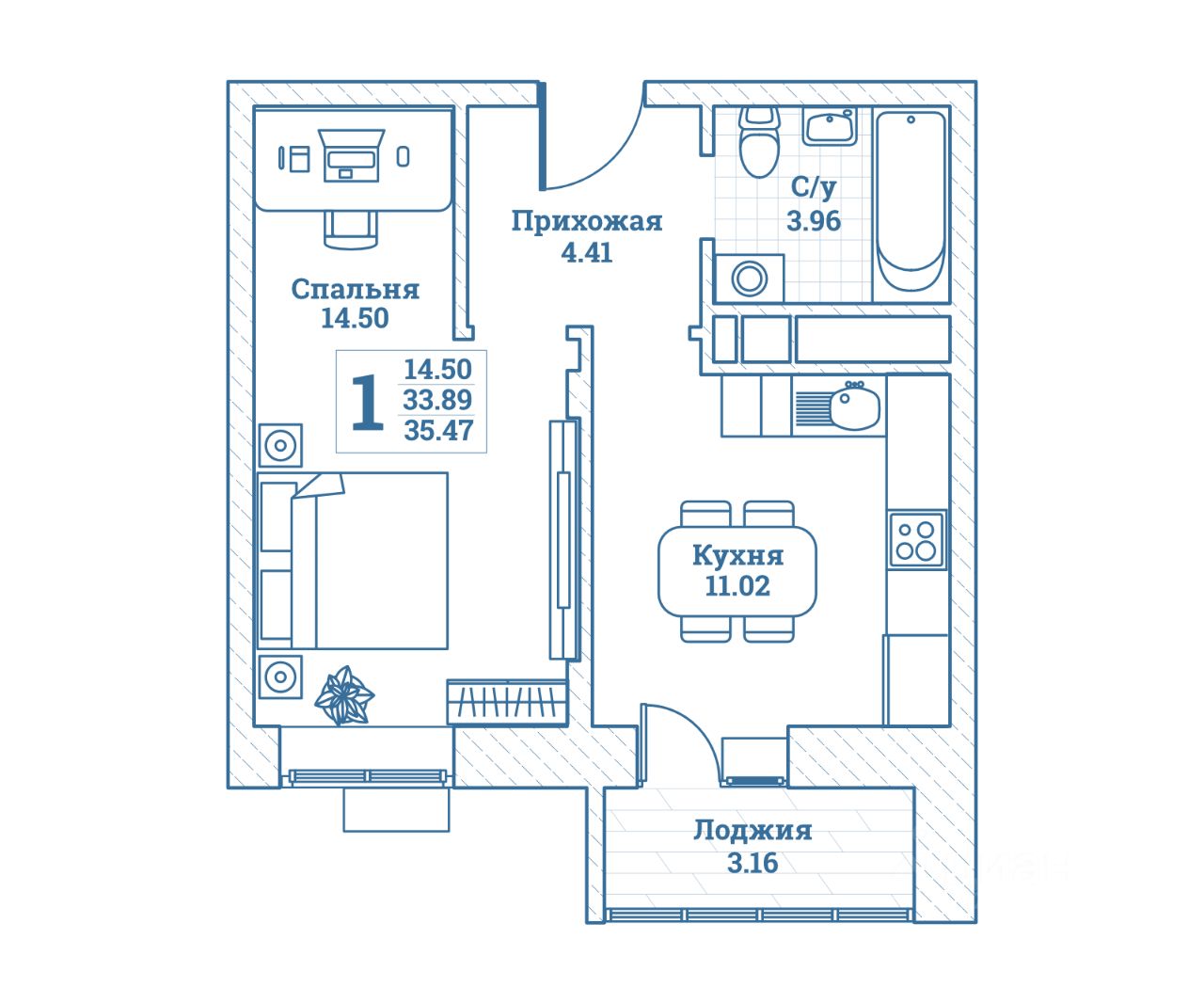 Общая площадь35,47 м²