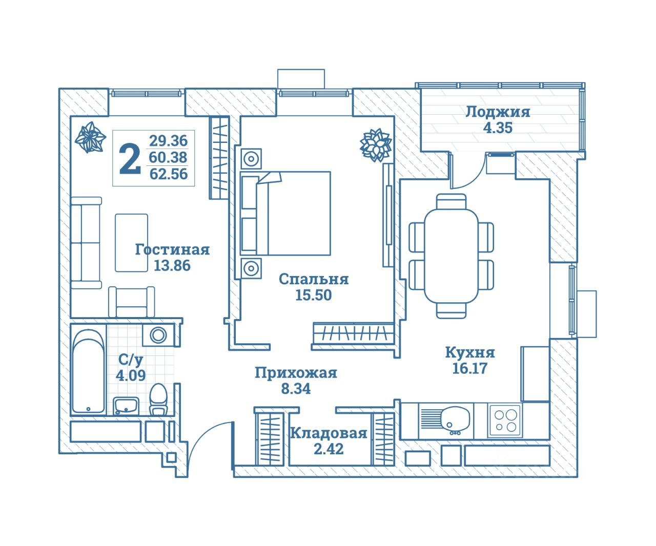 Общая площадь62,56 м²
