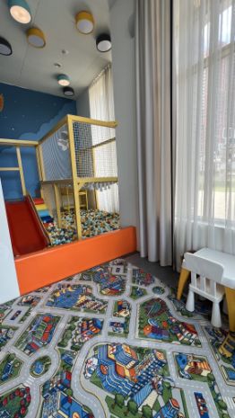 Дом построен по индивидуальному проекту в 2022 г. (уже прошёл период усадки), монолитный, многие соседи уже закончили ремонтные работы и заселились (не придётся постоянно слушать перфоратор). На 1 этаже предусмотрена большая игровая комната для детей и комфортное лобби для взрослых, а также лапомойка для животных. В доме 5 лифтов (3 пассажирских и 2 грузовых).