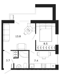 Планировка удобная и функциональная: две комнаты (13,8 м² и 8,5 м²) и кухня 7,4 м². Квартира подойдёт как для личного проживания, так и как готовый инвестиционный объект с доходом с первого дня.