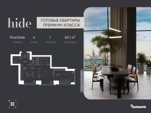 Предлагается просторная 2-комнатная квартира 60,1 м² с отделкой white box на 4 этаже в проекте hide — жилом небоскребе премиум-класса от Dominanta и MR.