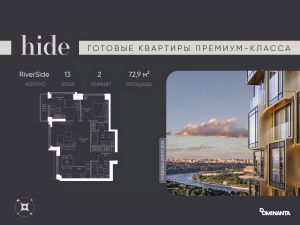 Предлагается просторная 3-комнатная квартира 72,9 м² с отделкой white box на 13 этаже в проекте hide — жилом небоскребе премиум-класса от Dominanta и MR.