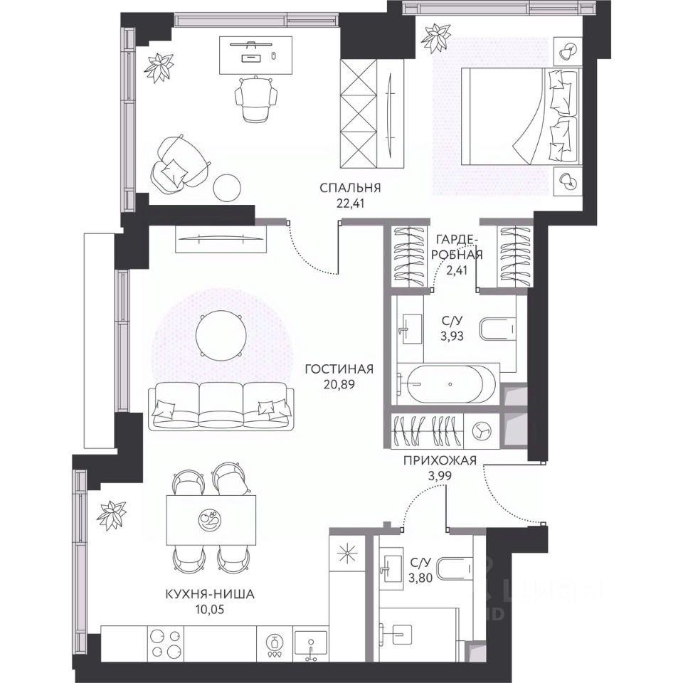 Эргономичную планировку с кухней - гостиной дополняет панорамное остекление от пола до потолка и интегрированная система "Умный дом". Это жилье нового поколения, в котором сочетаются впечатляющая архитектура, высочайший комфорт и отличное расположение на границе районов Раменки и Хамовники. Ваша жизнь будет дополнена продуманными общественными пространствами Life Space: от переговорных и библиотеки в центральном гранд-лобби до массажного кабинета и пространства для спорта. Более 50% закрытого двора занимает ландшафтный парк с искусственными холмами и "парящими" мостами. За несколько минут можно добраться до ТТК, Кутузовского проспекта или делового центра "Москва-Сити", при этом проект интегрирован в зеленую зону с природными заказниками Долина реки Сетунь и Воробьевы горы идеальное сочетание динамики мегаполиса и природы.