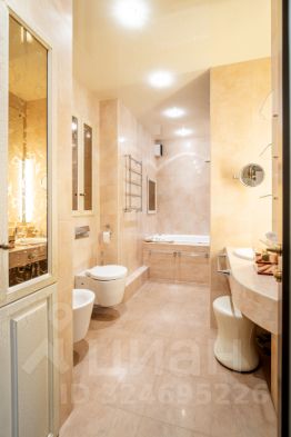 Каждая жилая комната дополнена собственной гардеробной, два полноценных санузла. Квартира полностью меблирована, сантехника от ведущих европейских производителей, есть кондиционирование, машиноместо в подземной паркинге за отдельную плату.