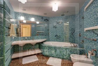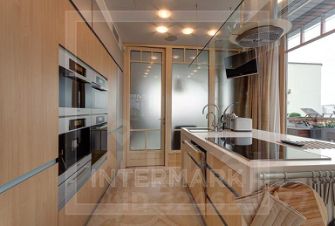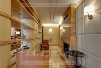 Выполнена авторская отделка в яхтенном стиле с использованием исключительно высококачественных материалов: на полу гостиной уложен травертин с водяным подогревом, стены оформлены натуральной кожей; деревянный предметы декора изготовлены из редкой разновидности клена "птичий глаз". В гостиной установлен действующий камин, обрамленный мраморным порталом, в барной зоне предусмотрены холодильник для вина и льдогенератор, в центре кухни расположен остров с надежной бытовой техникой премиум-класса.