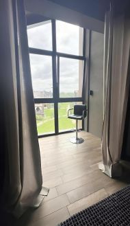 Первый этаж - кухня гостиная, санузел, гардеробная, две лоджии, второй этаж- мастер спальня с гардеробной, детская комната, ванна туалет, полы с подогревом.