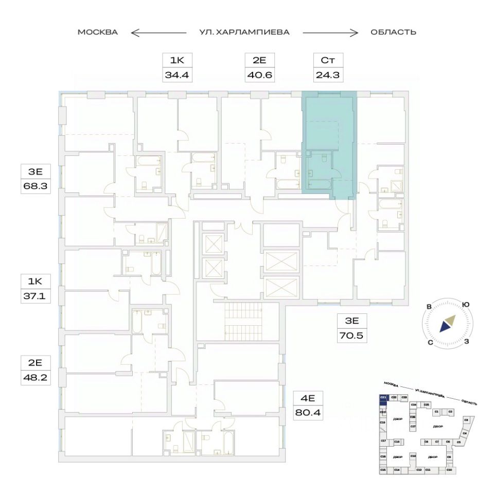ЖК "Детали" | квартира-студия, 24.30 м², 2-й этаж.