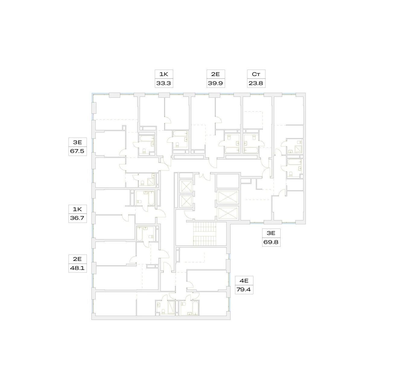 - В каждом лобби — общественный санузел, мягкая зона ожидания, отдельные помещения для хранения колясок, велосипедов и самокатов, а также помещения для мойки лап собакам