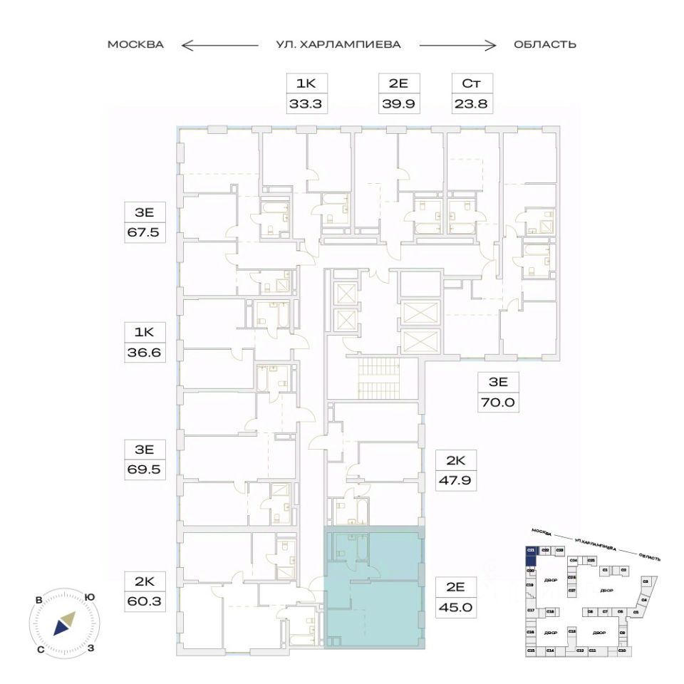 ЖК "Детали" | 2-комнатная квартира, 45.00 м², 9-й этаж.