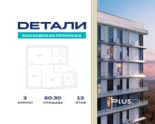 ЖК "Детали" | 3-комнатная квартира, 60.30 м², 13-й этаж.