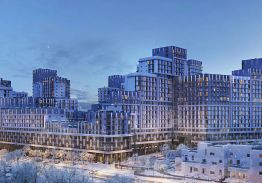 - Безбарьерная среда с многоуровневым ландшафтным парком, детскими площадками, зонами для отдыха и арт-объектами