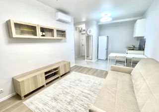 Продается светлая евродвушка, изолированная комната и большая кухня-гостиная. Санузел раздельный. Большие окна, современный качественный ремонт, кондиционер, возможность купить квартиру с мебелью и техникой.
