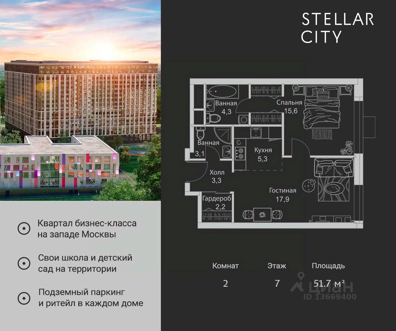 Продается квартира от надежного застройщика Tashir Estate в квартале бизнес-класса Stellar City в ЗАО Москвы.