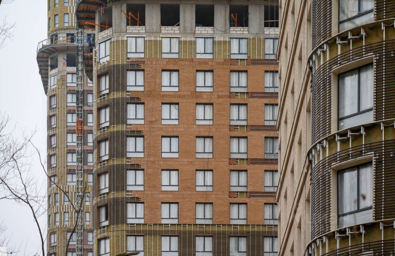 - Фасады облицованы плиткой теплых оттенков. Корзины для кондиционеров выполнены в тех же цветах, поэтому едва заметны.
