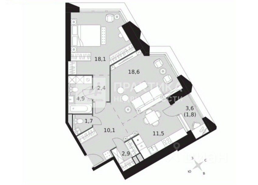 Кухня площадью 18 кв. м — идеальное место для приготовления вкусных блюд и семейных ужинов. На просторной лоджии можно наслаждаться видом на улицу и свежим воздухом.