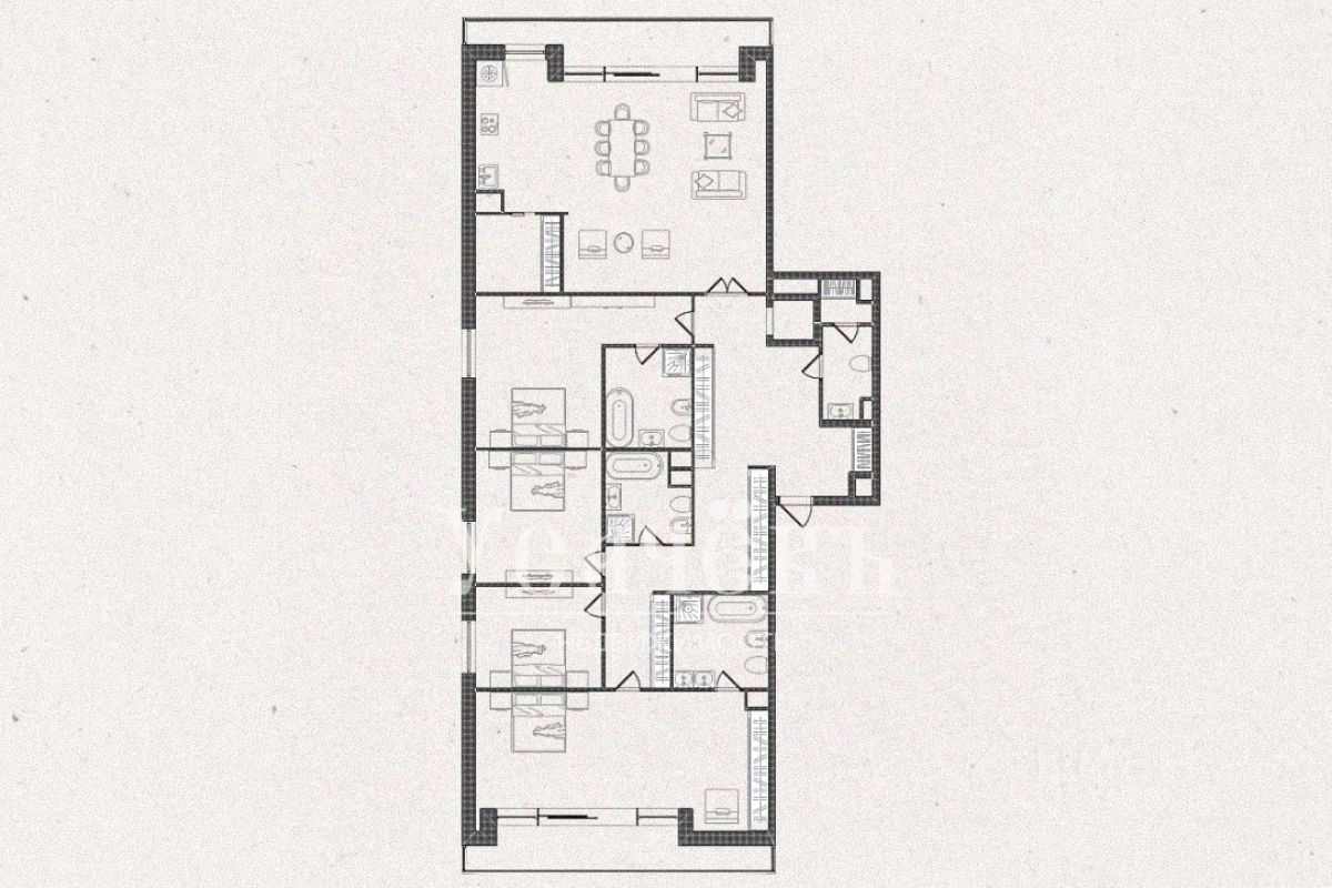Пентхаус передаётся в состоянии бетона, что позволяет полностью реализовать индивидуальный дизайн-проект.
