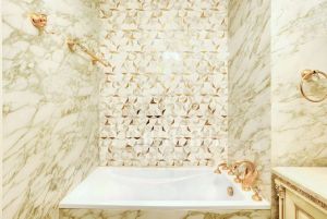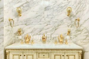 Интерьер в светлых тонах с использованием натуральных материалов: паркет, мрамор, керамогранит.