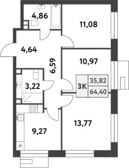 Продаётся 3-комнатная квартира в строящемся доме (Корпус 1), срок сдачи: IV-кв. 2026, общей площадью 64.4 кв.м., на 5 этаже. Многоквартирный жилой комплекс по адресу: г. Москва, поселение Сосенское, поселок Газопровод, улица Лесные Поляны 5-я, земельный участок 20