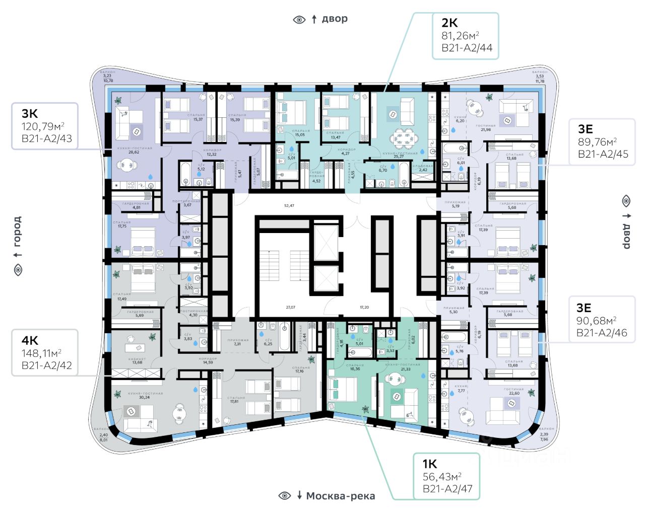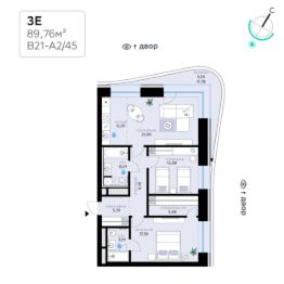 В продаже — двухкомнатная квартира, общей площадью 89,76 кв. м. Квартира расположена на восьмом этаже тринадцатиэтажной секции корпуса класса Адвансд в новом районе СберСити, который строит Сбер. Дом находится на второй береговой линии Москвы-реки.