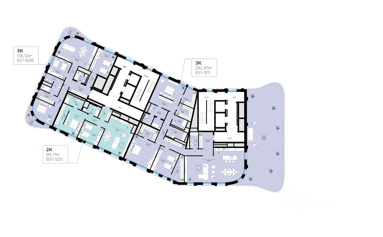 В продаже — трехкомнатная квартира с чистовой отделкой, общей площадью 135,12 кв. м. Квартира расположена на шестом этаже семиэтажной секции корпуса класса Суперб в новом районе СберСити, который строит Сбер. Дом находится на первой береговой линии Москвы-реки.