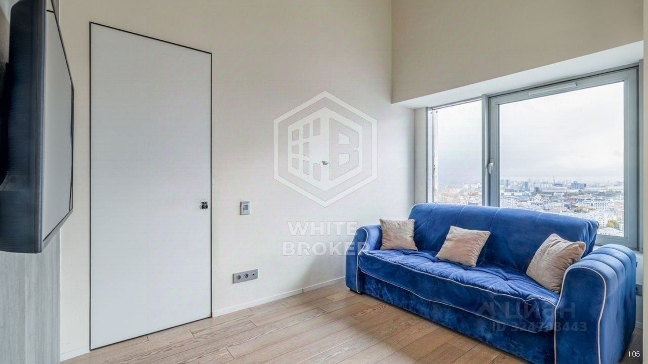 Потрясающий вид на Москву! Высота потолков 6 м! (таким образом можно увеличить метраж за счёт возведения в квартире второго этажа). Есть балкон, в отличие от этажей ниже. Апартамент оснащён всей необходимой техникой. Просторная зона кухни-столовой-гостиной, большая спальня. Встроенные гардеробные системы.