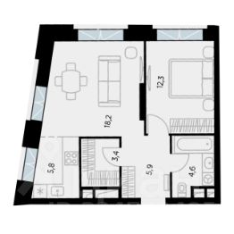 Грамотная и функциональная планировка, позволяет разделить пространство на 2-е отдельные большие комнаты и организовать место для хранения с гардеробной и построчной, а также разместить душевую и ванную в санузле.