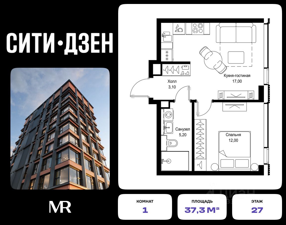 Продается 1-комнатная квартира от застройщика в жилом мультиквартале СИТИДЗЕН на 27-м этаже в корпусе #1 урбан-блока PARUS. Общая площадь лота составляет 37.30 м²