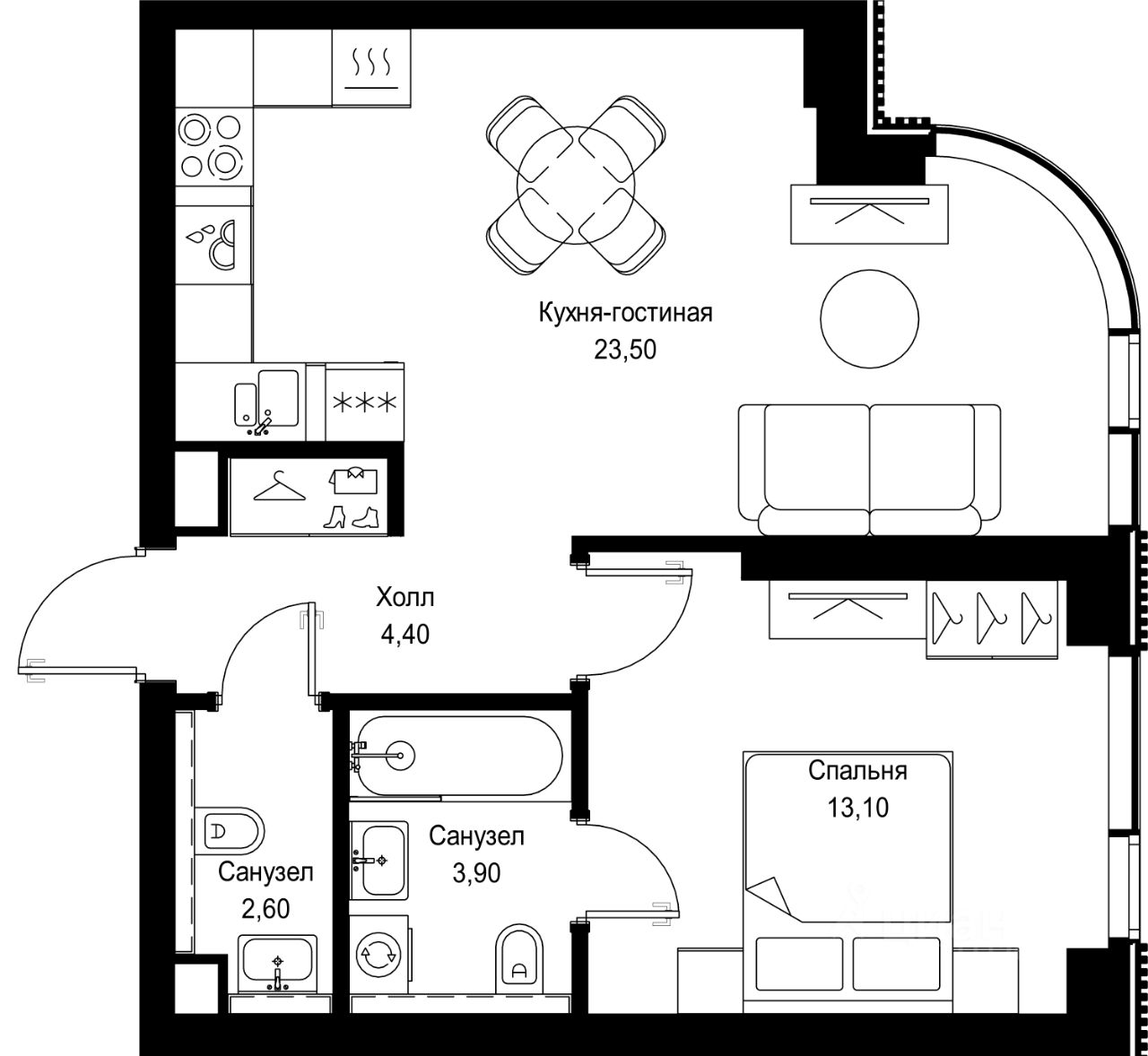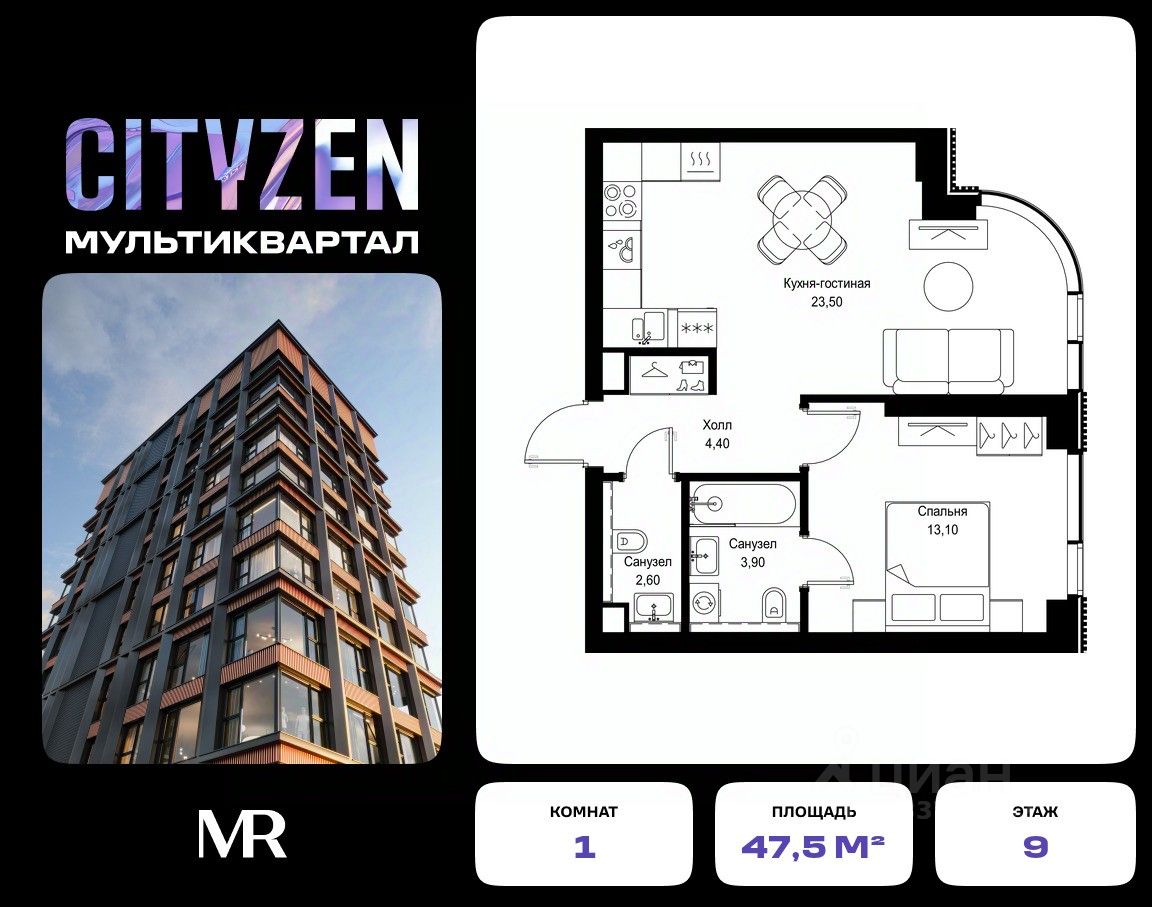 Продается 1-комнатная квартира от застройщика в жилом мультиквартале CITYZEN на 9-м этаже в корпусе #1 урбан-блока PARUS. Общая площадь лота составляет 47.50 м²