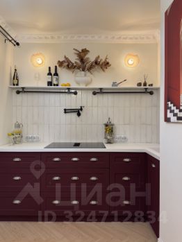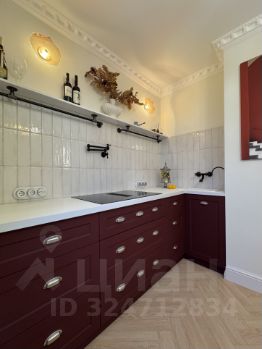 * Основная часть кухни выполнена в глубоком цвете бургунди, с легкой винтажностью деталей и декора. Эта кухня про ту самую эстетику, где каждый элемент на своем месте и играет немаловажную роль.