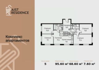 Продаются 5-к апартаменты площадью 95.60 кв.м. на 4-м этаже