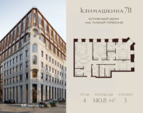 Климашкина 7/11 — клубный семейный дом с ультрасовременной архитектурой, в которую оправлена антикварная редкость — полностью сохраненный фасад особняка XIX века. В проекте всего 46 резиденций — ни одной лишней, ни одной случайной. На этаже — от двух до четырех квартир, что создает исключительную приватность, редкую даже для элитного сегмента.