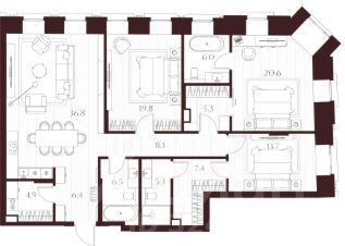 Продаётся 3-комнатная квартира общей площадью 140.80 м².