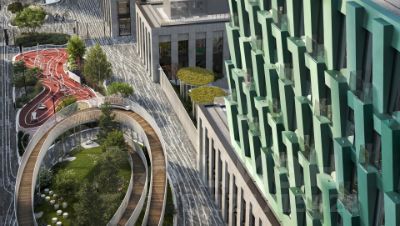 внешний вид. На первых трех этажах — стилобаты с фитнес и спа-центрами.