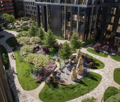 Концепция благоустройства территории мультиквартала предусматривает большое количество вечнозеленых растений, что создает ощущение максимальной близости к природе. Жителей квартала ждут места для отдыха, игр, занятий спортом и прогулок с домашними питомцами. В приватном дворе с собственным садом предусмотрена зеленая комьюнити-гостиная для дружеского отдыха и общения, одна из стен которой подходит для кинопроекций, а также зеленый рабочий кабинет в саду (бизнес-гардена), оборудованный wi-fi станцией и usb-разъёмами для зарядки устройств. Маленьких жителей ждут авторские игровые площадки для разных возрастных групп (от 0 до 12 лет).