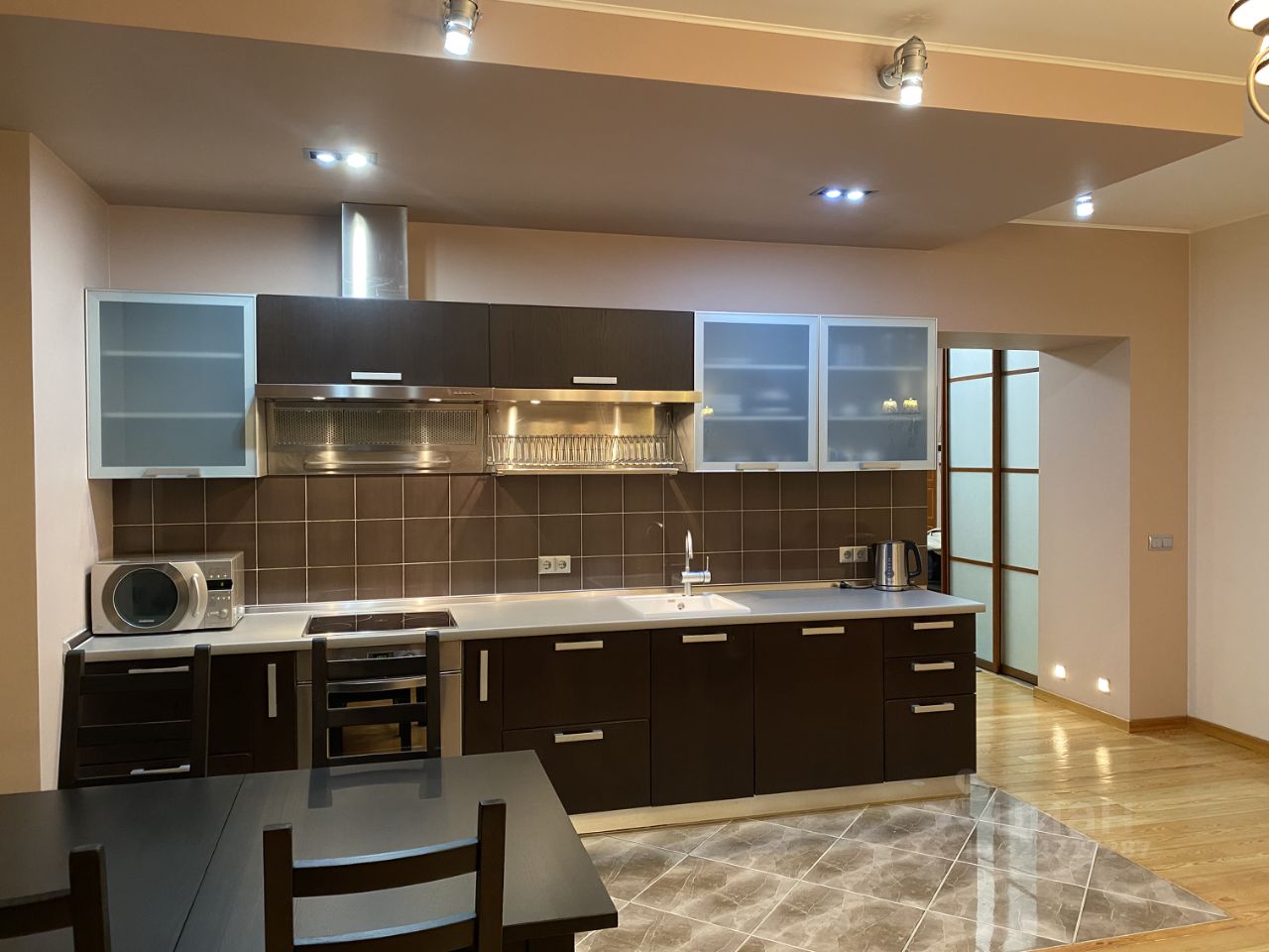 Продается удобная функциональная квартира в кирпичном доме. Квартира укомплектована всей необходимой мебелью и бытовой техникой в отличном состоянии. Натуральные отделочные материалы, пол - лиственница. Экологичность: даже при долгом отсутствии не появляется никакого токсичного запаха. Удобная планировка: вместительный холл с двумя огромными шкафами-купе, две спальни и студия 35 метров с объединенной лоджией. В санузлах теплые полы.