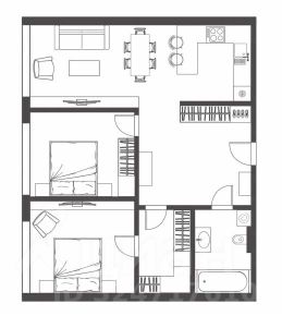 Квартира в бетоне, что позволяет воплотить все ваши дизайнерские идеи и создать интерьер по своему вкусу. В планировке предусмотрен один совмещенный санузел.