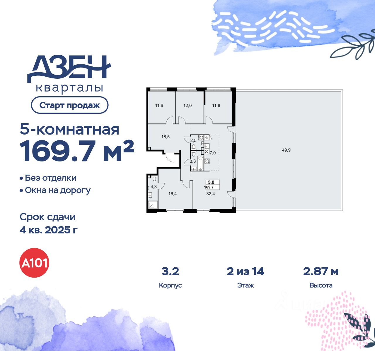 Продается многокомнатная квартира 495 в новостройке ЖК "Дзен-кварталы" по адресу Москва, ТиНАО, Новомосковский АО, Сосенское С/П, жилой комплекс Дзен-кварталы, 3.2, район Коммунарка, Новомосковский административный округ, Москва. Общая площадь квартиры - 169.70 кв. м., этаж 2 из 14, секция 7. Тип проекта, по которому построен дом - монолит, компания-застройщик - ООО "А101". Стоимость квартиры - 41189584 Р. Срок сдачи - 4 квартал 2025.